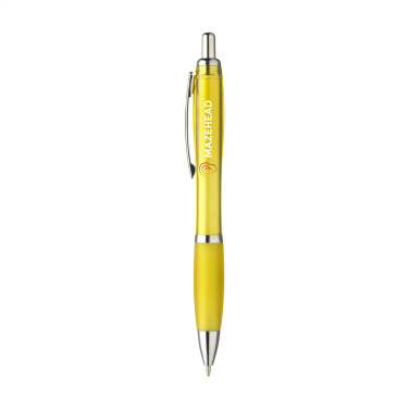 Blau- oder schwarzschreibender Kugelschreiber mit transparentem Schaft, rutschfestem Griff und Metallclip.