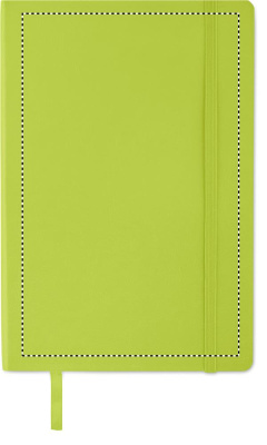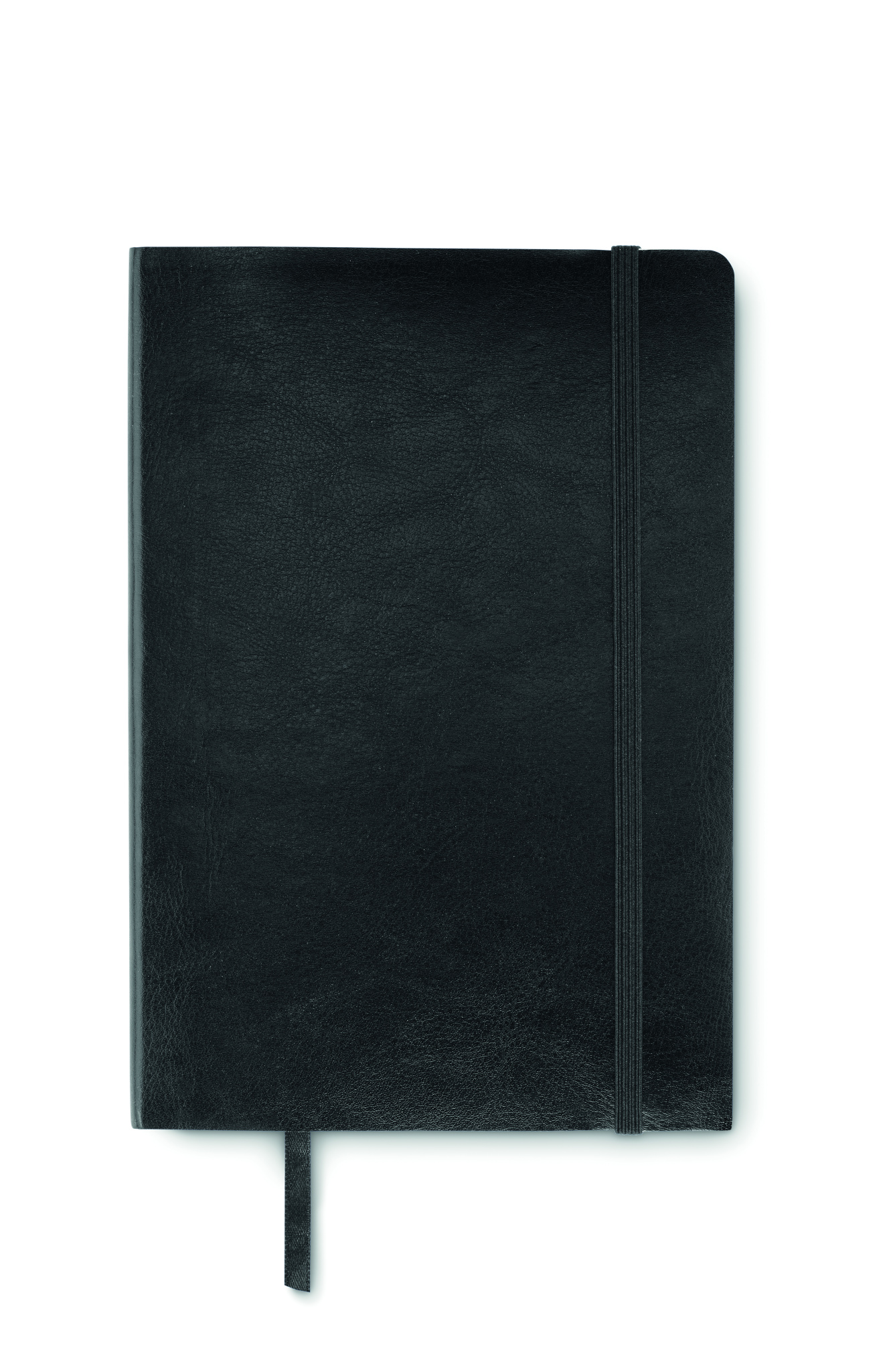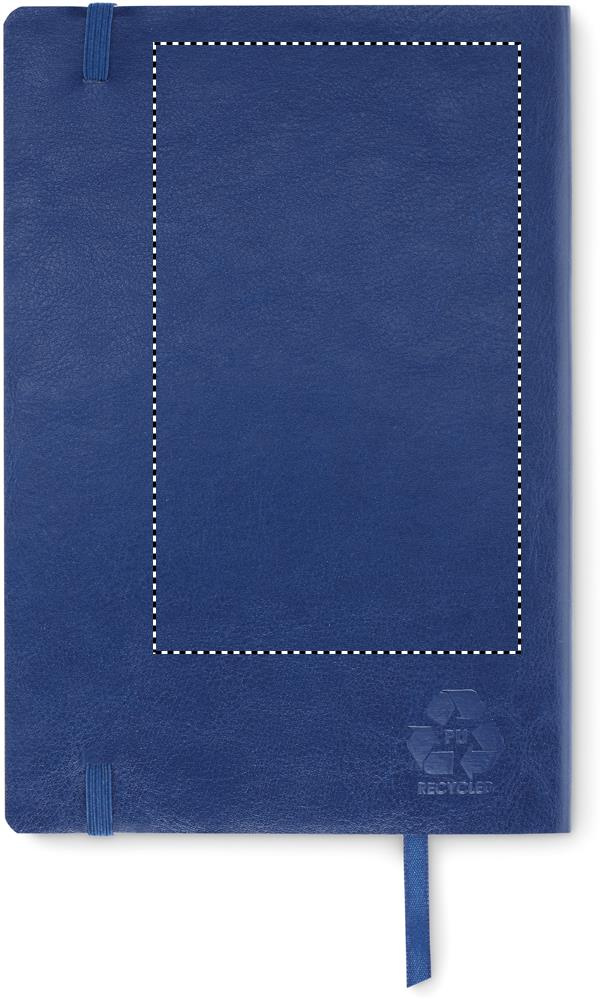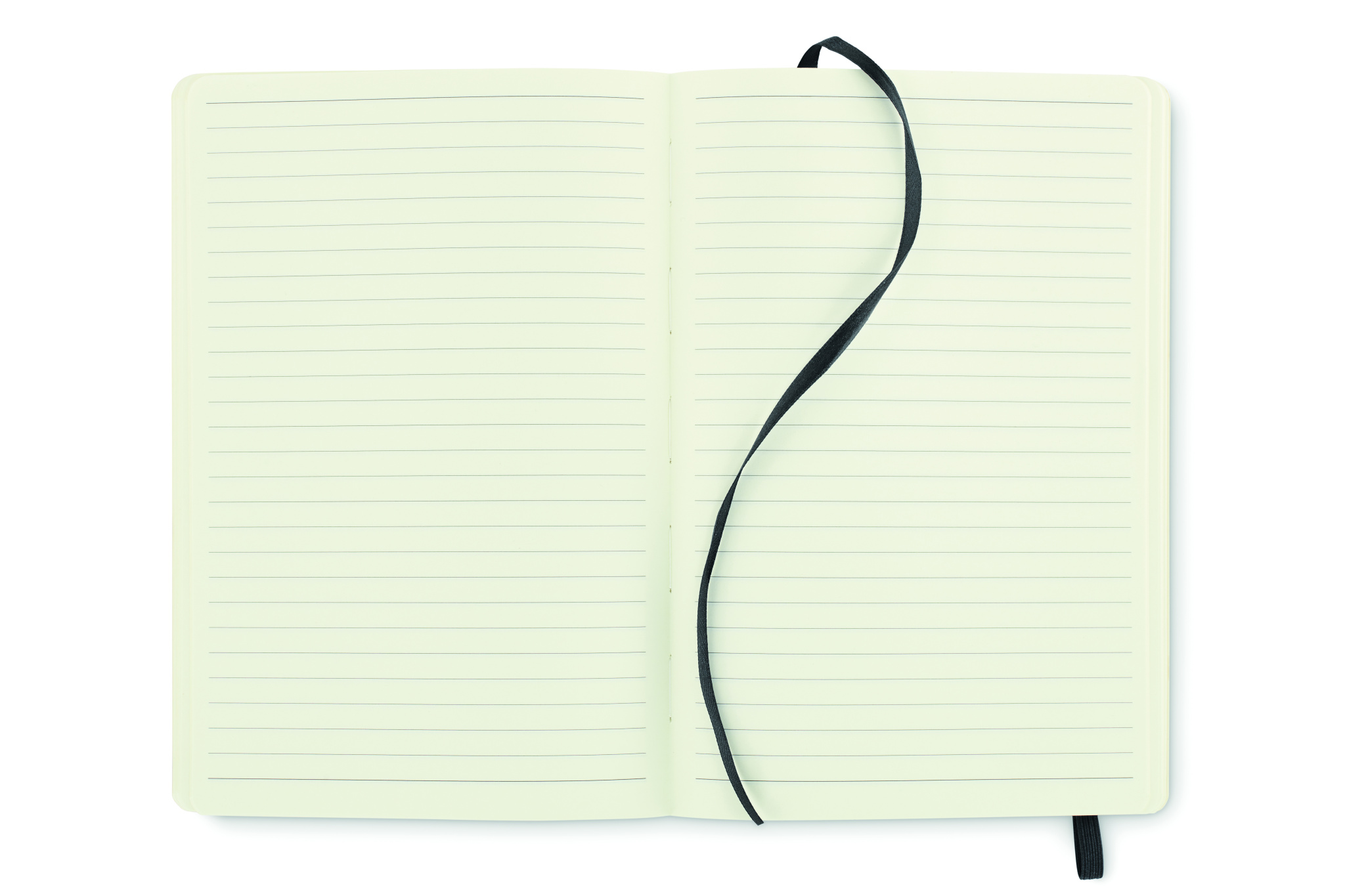 DIN A5 Notizbuch mit gebundenem Soft Cover aus recyceltem PU (81% recyceltes Polyester, 19% PU). 80 Blatt (160 Seiten) recyceltes, liniertes Papier. Rückseitige Innentasche. Elastisches Verschlussband, Lesebändchen. FSC®-certified | FSC MIX CREDIT, P7.1, FSC-C213206
