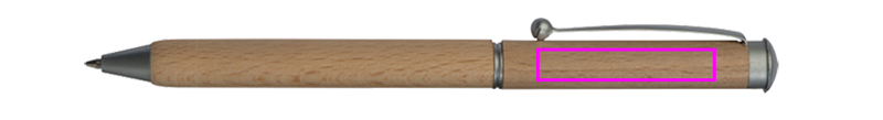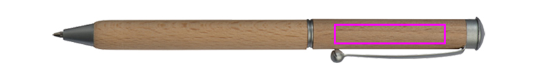 Drehkugelschreiber aus Holz mit blauschreibender Metallmine und Holzetui. Ihre Werbung wird unterhalb des Clips eingraviert.