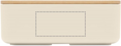 Lunchbox aus 100% PLA-Mais. Deckel aus Bambus und RPET-Elastikbandverschluss. Füllmenge: 1000 ml.