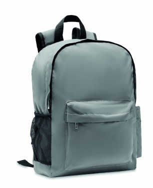 Rucksack aus reflektierendem 190T Polyester. Gepolstertes 15'' Laptopfach. Fronttasche, seitliche Tasche mit Reißverschluss sowie Netztasche. Gepolsterter Rücken aus recyceltem 600D Polyester.