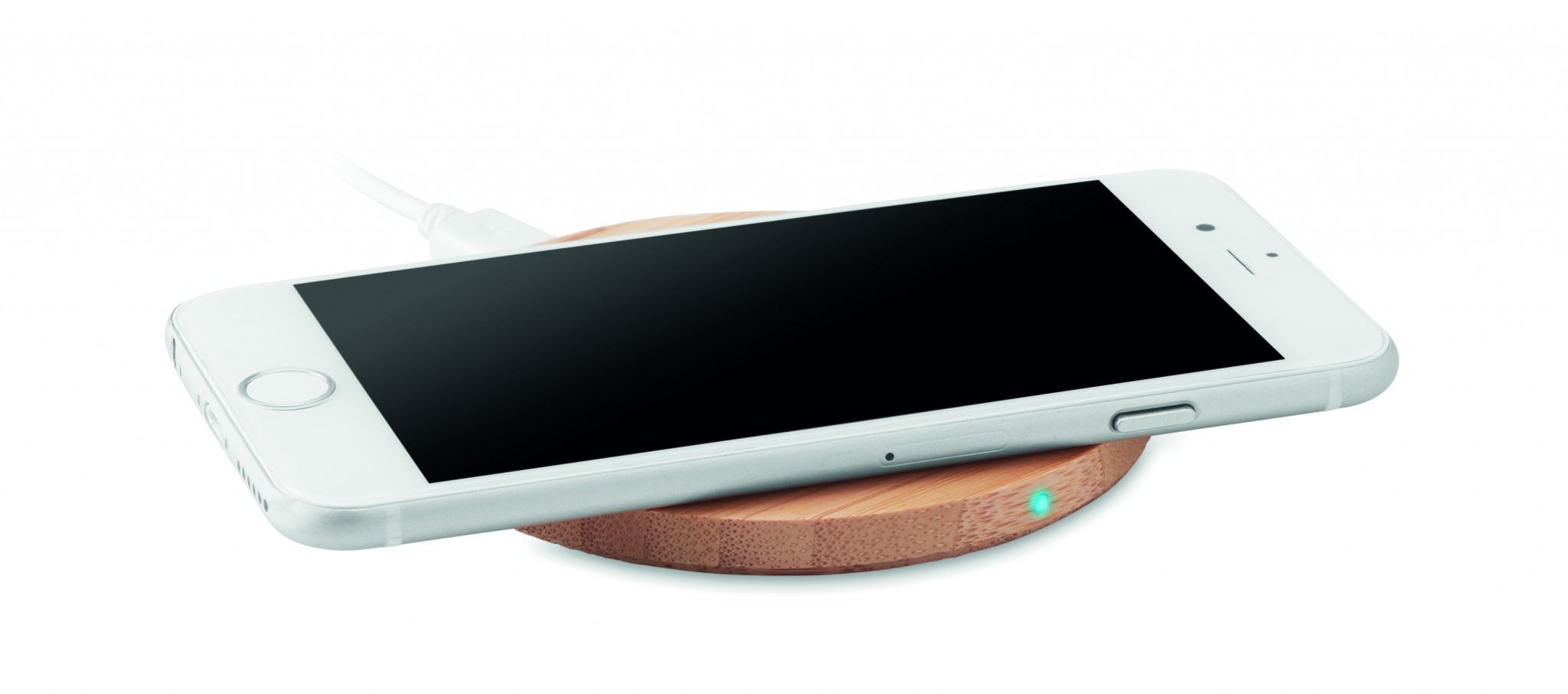 Logotrade Logogeschenke das Foto: Ronde draadloze bamboe oplader 10W RUNDO +