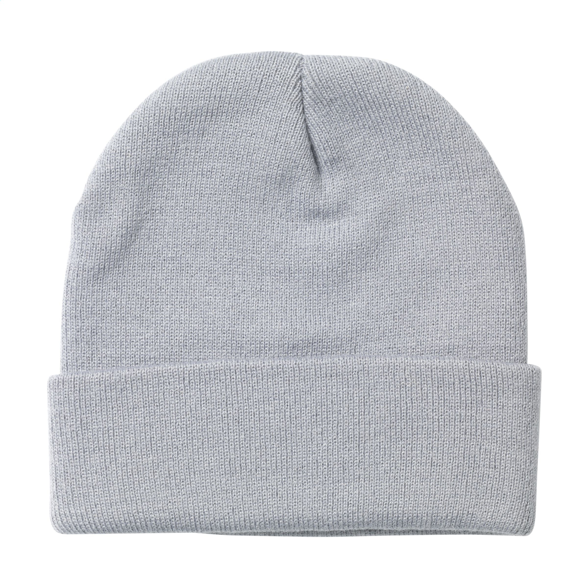 WoW! Strickmütze mit Umschlag. Aus 100 % RPET-Polyester. Ein beliebter Artikel, der schön warm hält und trotzdem gutes Material bietet. Einheitsgröße. Mit schwarzem Etikett zur Verzierung. GRS-zertifiziert. Gesamtanteil recycelter Materialien: 100 %.