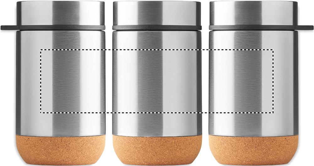 Doppelwandiger Vorratsbehälter aus Edelstahl mit Schraubverschluss und Korkboden. Inkl. Löffel. Füllmenge: 400 ml. Kork ist ein 100% natürliches Material. Aufgrund seiner strukturellen Beschaffenheit und Oberflächenporosität kann das endgültige Druckergebnis pro Artikel Abweichungen aufweisen.