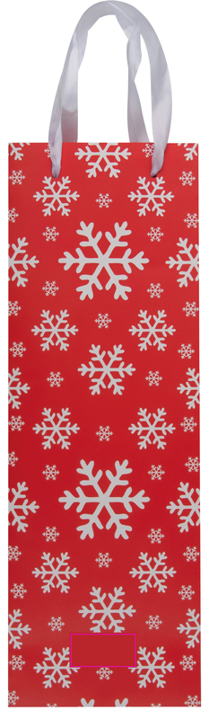 Geschenktüte aus Papier mit schönem Weihnachtsmotiv und zwei Tragegriffen, für eine Weinflasche. Ihr Logo kleben wir auf einem CMYK-Etikett auf die Tüte.