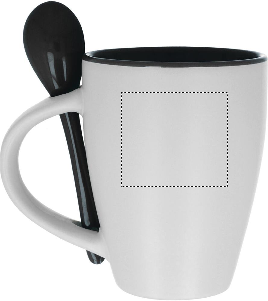 Bicolour ceramic coffee mug of 250 ml capacity with colour matching spoon. Individual box 11,5x10,5x9,3cm.