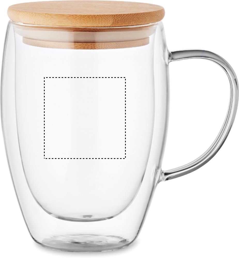 Double wall borosilicate glass mug with handle and bamboo. Capacity: 350 ml.