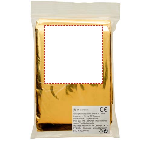 Emergency blanket that can provide protection against heat, cold, and humidity. It is perfect for camping trips, sporting events, and for emergency situations. When the silver side is against the body it will offer protection against the cold. The golden side against the body will keep you cool. Blanket size is 160x210 cm. The blanket is regulated, tested, and certified as a Medical Device Class I in accordance with Medical Device Directive MDD 93/42/EEC of 14 June 1993.