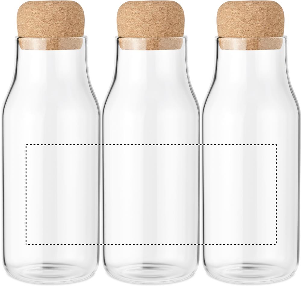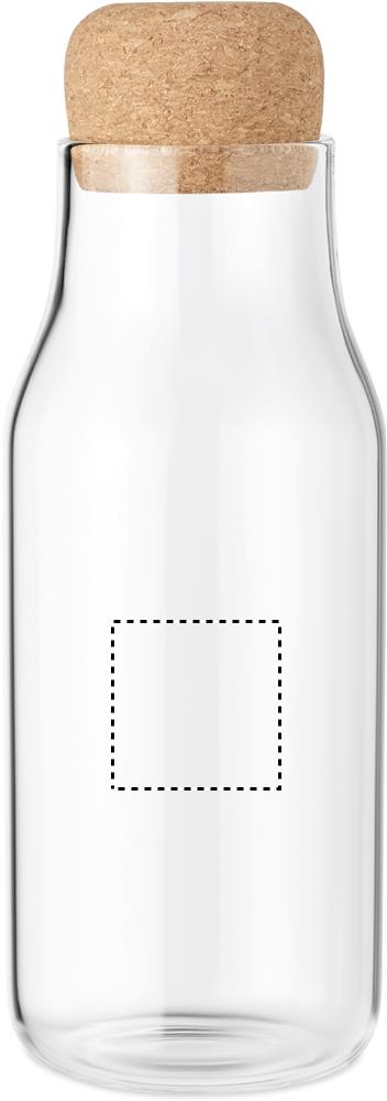 Borosilicate glass bottle with cork lid. Capacity: 600 ml. Cork is 100% natural material. Due to its structural nature and surface porosity the final print result per item may have deviations.
