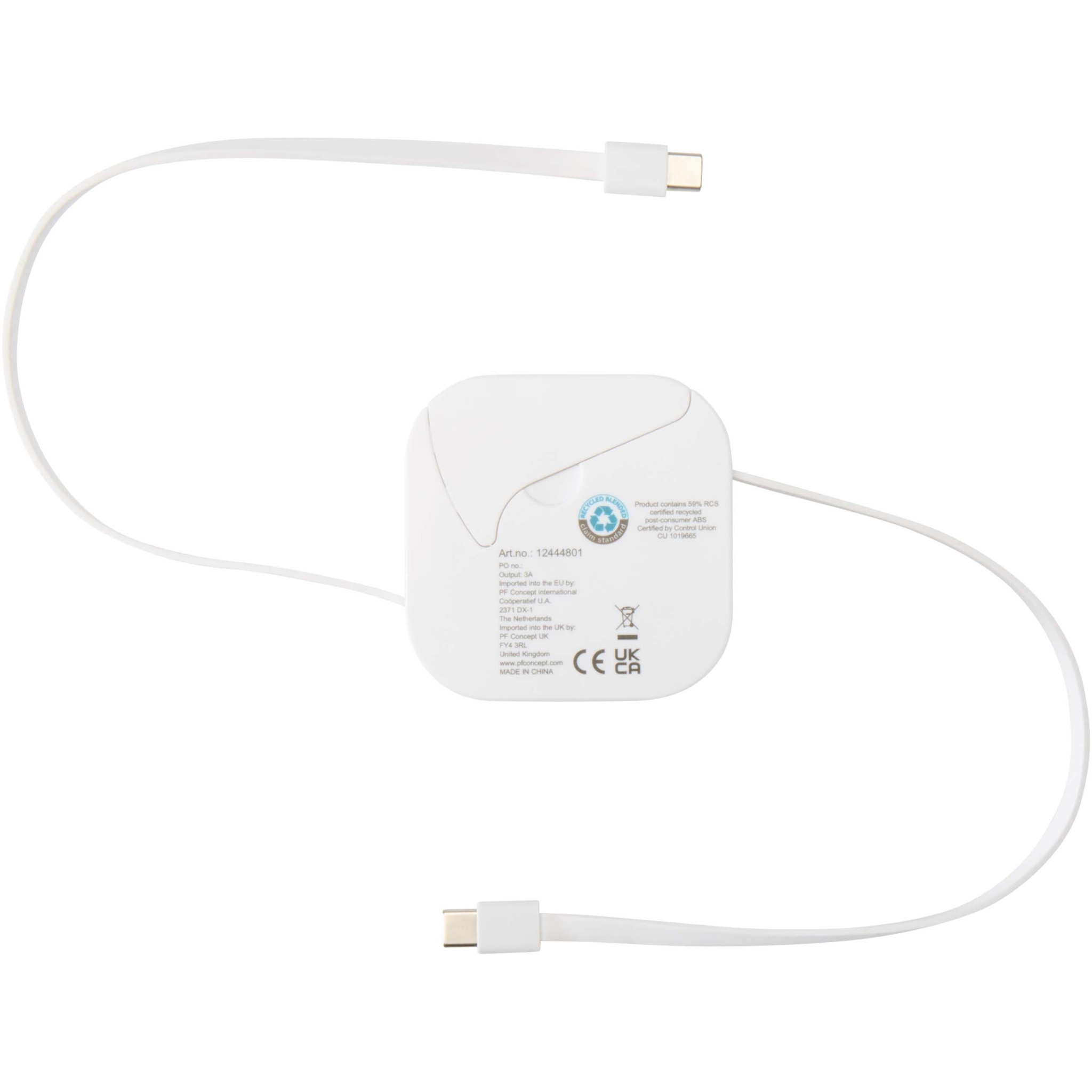 Gloas 5-in-1 recycled retractable data sync and 100W fast charge cable with smartphone tool kit, White