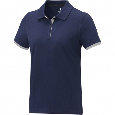 The Morgan short sleeve women's duotone polo is a stylish and comfortable option for any casual or business setting. Made from a 200 g/m² piqué knit cotton fabric, this polo is both durable and breathable. Featuring a flat knit collar and rib cuffs with contrast colour detailing, this polo offers a modern twist on a classic design. The two-button placket and pick-stitch details add an extra touch of sophistication, and the satin neck tape and heat transfer main label provide comfort and ease of wear. This polo is designed with a fitted shape for a feminine look.