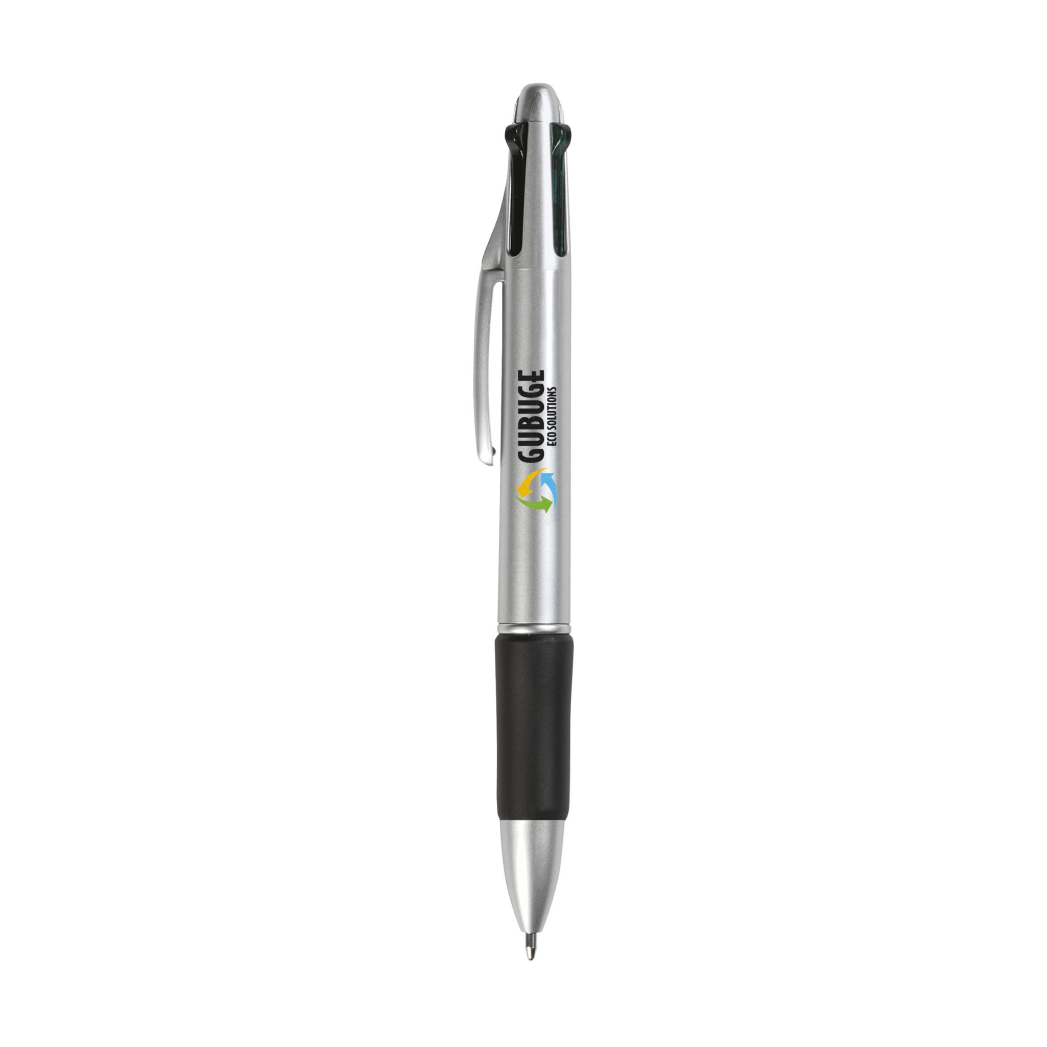 4-colour ballpoint pen with non-slip rubber grip. Equipped with blue, green, red and black ink.