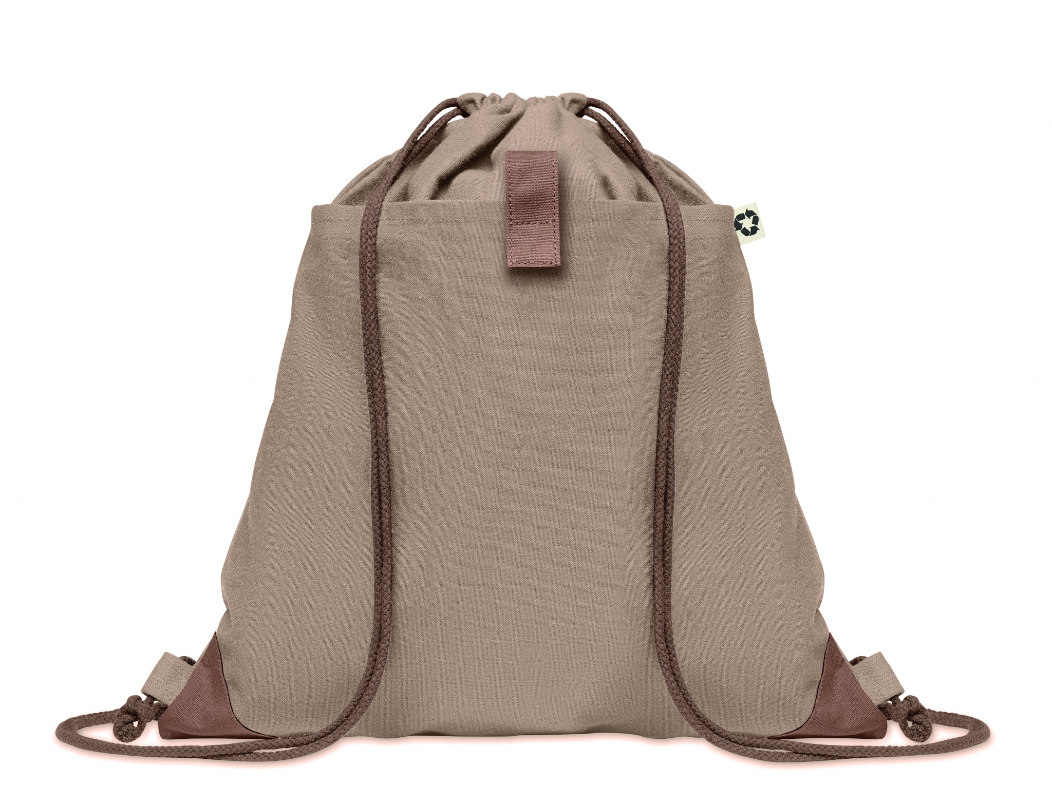 Recycled cotton drawstring bag with natural cords 50% cotton and 50% recycled cotton. 220 gr/m².