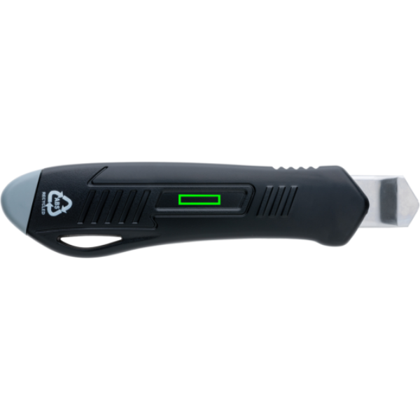 Refillable RCS certified recycled plastic snap-off knife made with RCS (Recycled Claim Standard) certified recycled ABS and stainless steel blade. Total recycled content: 36% based on total item weight. RCS certification ensures a completely certified supply chain of the recycled materials. This versatile knife features a snap-off blade design, allowing you to easily replace the SK4 blade when it becomes dull. Whether you need to cut through cardboard, plastic, or even thin sheets of metal, the snap-off knife is up to the task. The sharp, durable blade ensures that you'll get clean, precise cuts every time. The knife is also incredibly easy to use. The comfortable handle provides a secure grip, allowing you to maintain complete control as you cut. Plus, the lightweight design makes it easy to carry with you wherever you go. Packed in FSC® mix kraft package. The item comes with 1 blade inside the item and two extra blades.