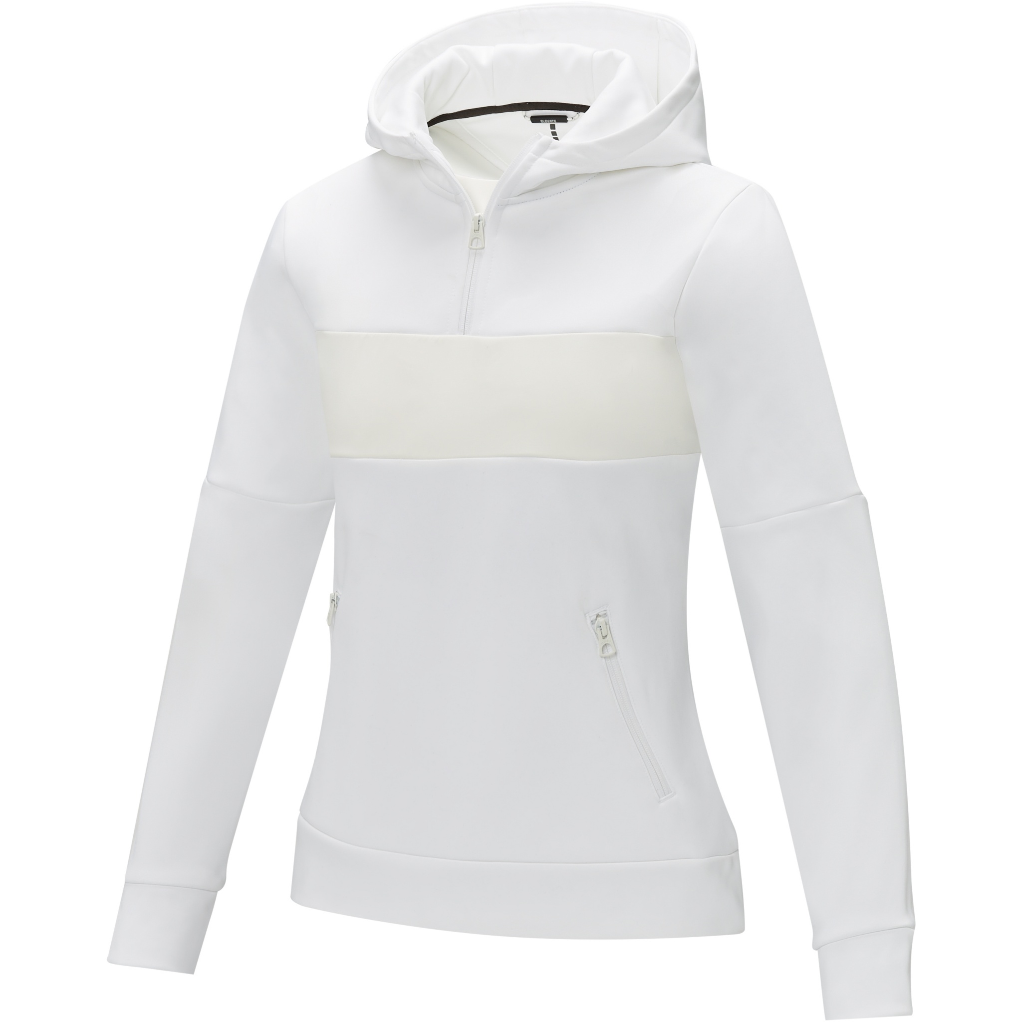 The Sayan women's half zip anorak hooded sweater – a unique combination of performance and style. The anorak design combines fashion and function seamlessly, featuring a quarter zip for versatility in layering. Made from a 350 g/m² blend of polyester and Sorona® knit. The Sorona® fiber enhances the jacket's eco-friendliness by incorporating a sustainable element without compromising on performance. The contrast fabric on the front panel, made of 280T ripstop nylon, adds to the design with its durability and texture and is the ideal location to showcase your brand. Whether you're embarking on an outdoor adventure or simply navigating your daily routine, the Sayan hooded sweater effortlessly combines fashion with function. This sweater is designed with a fitted shape for a feminine look.