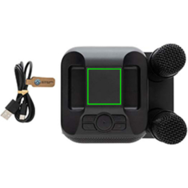 Sing, dance and have fun with your friends with this quality karaoke set with two microphones that allows you to sing in stereo with your best friends. The speaker and mic come with an induction charging base so you can charge all three easily at the same time. Simply switch on a music video with lyrics or enable the lyrics in your favorite music player and get ready for hours of fun! The 5W speaker comes with a 2000 mah battery that allows up to 6 hours of usage. The speaker also supports TF card and USB for music. When using the microphones you can move up to 10 meters away from the speaker. The speaker is made with RCS (Recycled Claim Standard) certified recycled ABS. Total recycled content: 53% based on total item weight. RCS certification ensures a completely certified supply chain of the recycled materials. Including type C charging cable made from RCS certified recycled TPE. Packed in FSC® mix. PVC Free.