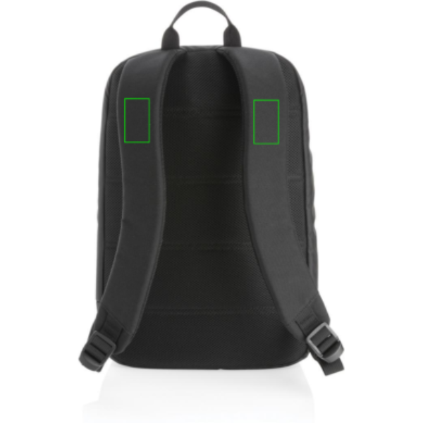 This unique Swiss Peak laptop backpack with UV-C sterilising pocket features a minimalistic design and has an integrated UV-C sterilising external front pocket, killing up to 99,9% of the bacteria on items placed inside the pouch. Perfect for sanitising your keys and phone for example while on the go in 3 minutes. The three UV-C LED lights inside are non-toxic and mercury free. The design will also ensure that the UV-C LED light will switch off automatically when the sterilising pocket is opened via the zipper so the user will not be exposed to the UV-C light. The backpack has a laptop compartment in the main pocket which fits a 15.6 inch laptop, 2 open pockets and 2 pen loops. Mesh padded back and straps for comfort. Including a micro USB cable which you can use to connect your powerbank with to charge the UV-C pouch. Exterior 600D and 900D PU coated polyester. Interiour 210D polyester. Compliant with EN62471. PVC free.