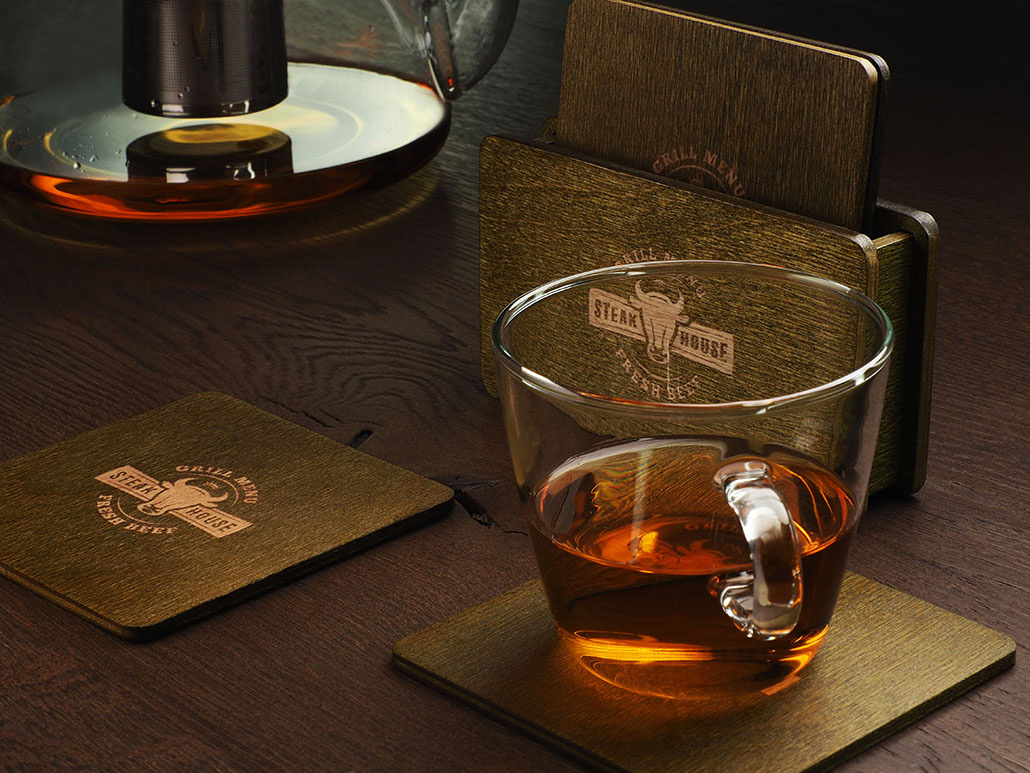 Logo trade promotional giveaway photo of: Wooden box with 4 coasters 1871121