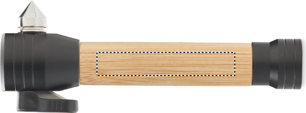 Logo trade meened foto: 3-ühes bambusest taskulamp koos avariivasara ja turvavöölõikuriga