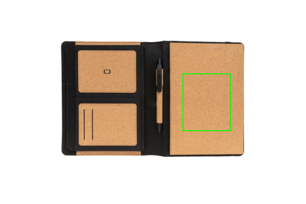 Hoidke kõik oma tööks vajalikud asjad korras selles kaunis A5 portfolio-mapis. Portfolio seest leiate sobiva märkmiku ja pastaka. Märkmikus on 64/128 lehte kreemikat joonelist 80gm/s paberit. Seest leiate 1 suure tasku, telefonitasku, 2 kaardipesa ja pliiatsiaasa. Elastne sullgur. Kaass sobilik korgist- ja nisufiibrist pastakas. Kinkekarbis.