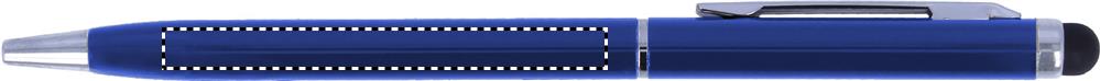 Alumiiniumist keeratav pastapliiats pliiatsi ja läikiva kroomitud klambriga. Sinine tint.