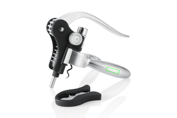 Alumiiniumist, karastatud terasest ja teflonkattega spiraalist valmistatud kangimehhanismiga korgitser, sealhulgas fooliumilõikur ja tahvel koos ülevaatega parimatest veinipiirkondadest 1990. aasta seisuga.