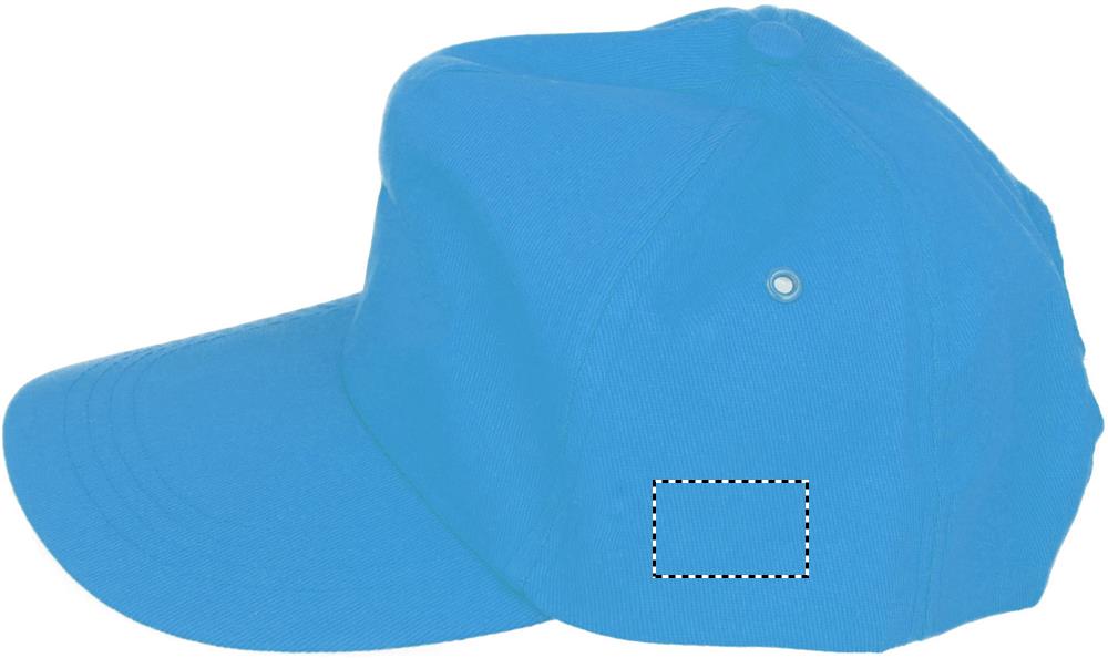 5 paneeliga puuvillasest toimsest pesapallimüts, 160 gr/m2, reguleeritava plastikust lukuga. 2 sobiva värviga metallaasa. Suurus 7 1/4.