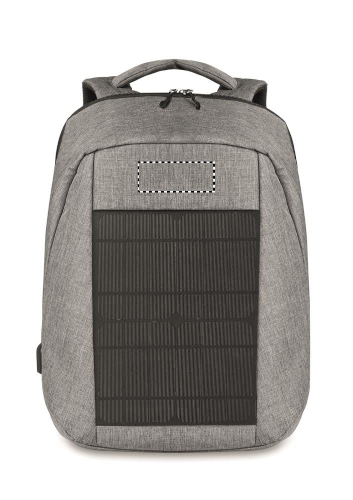 2-tooniline 600D polüester seljakott sisseehitatud 10W päikesepaneeli laadijaga koos USB-pordi ja kaabliga. Telefoni laadimisaeg on otsese päikese käes umbes 5-6 tundi. 2 peamist sektsiooni. Mitu sisetaskut Sisaldab ühte sisemist 13-tollise sülearvuti sahtlit. Polsterdatud selja- ja õlarihmad. Täiendav tasku tahvelarvuti sahtli jaoks.