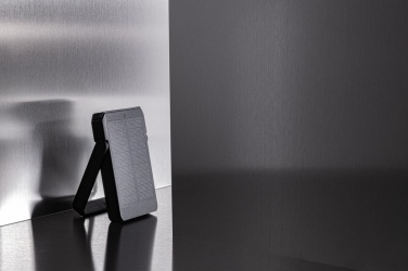 5000 mAh päikesepatarei, mis on valmistatud RCS-sertifikaadiga taaskasutatud ABS-ist. Taaskasutatud kogusisaldus: 21% eseme kogukaalust. RCS-sertifikaat tagab taaskasutatud materjalide täielikult sertifitseeritud tarneahela. Powerbank kasutab kvaliteetseid monokristallilisi päikesepaneele, mille konversioonimäär on 19%. Tasu määr sõltub tingimustest. Integreeritud statiivifunktsiooniga päikesepaneelide kasutamiseks optimaalse nurga all. Akupank sisaldab kauakestvat A-klassi 5000 mAh liitiumakut. 10 W juhtmevaba magnetlaadijaga telefoni laadimiseks ilma kaabliteta. Laadimiskiirus päikeseenergia: 5V/130mA. Sisendtüüp C: 5V/2A. Väljund: USB A: 5V/2A Tüüp C: 5V/2A. Toode ja tarvikud PVC-vaba. Kaasa arvatud RCS-sertifikaadiga taaskasutatud TPE laadimiskaabel. Pakitud FSC® segupakendisse. Registreeritud disain®