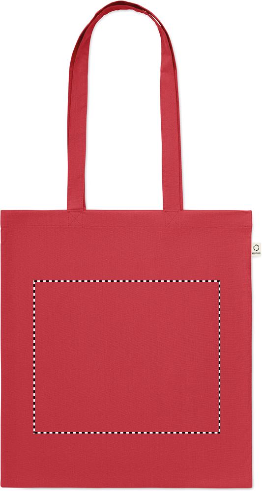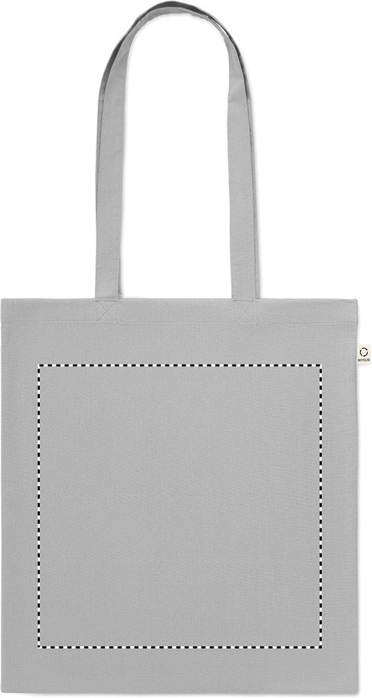 Tarbimiseelsest taaskasutatud puuvillasest ostukott (70% taaskasutatud puuvill ja 30% RPET) pikkade sangadega. 140 gr/m².