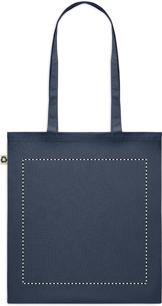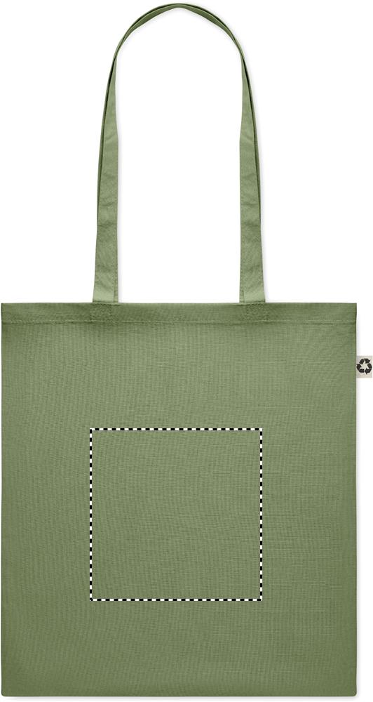 Tarbimisjärgsest taaskasutatud puuvillasest ostukott (65% taaskasutatud puuvill, 35% tavaline puuvill) pikkade sangadega. 140 gr/m².