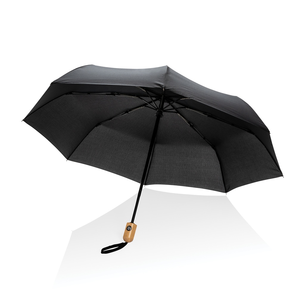 Logo trade liikelahja mainoslahja tuotekuva: 21" Impact AWARE™ RPET 190T auto open/close bambusateenvarjo