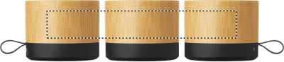 Langaton 5.1-kaiutin bambukuorella ja ABS-jalustalla. 3 W monoääni. Mukana ladattava ja vaihdettava 500 mAh akku. Kompakti ja moderni muotoilu.