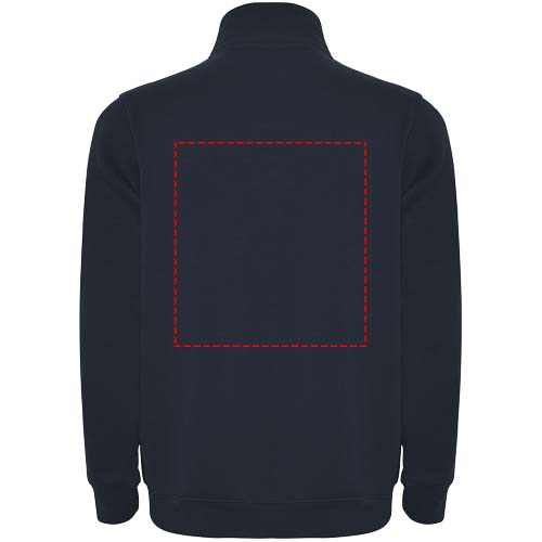 Collegepaita saman sävyisellä puolivetoketjulla ja korkealla kauluksella. Kauluksen sisäpuoli saman sävyinen. Kauluksen sisäpuolella vahvistettu sauma. Hihansuut ja vyötärö ribbineulosta 1x1. Kuvan malli on 185 cm pitkä ja hänellä on päällään koko M.