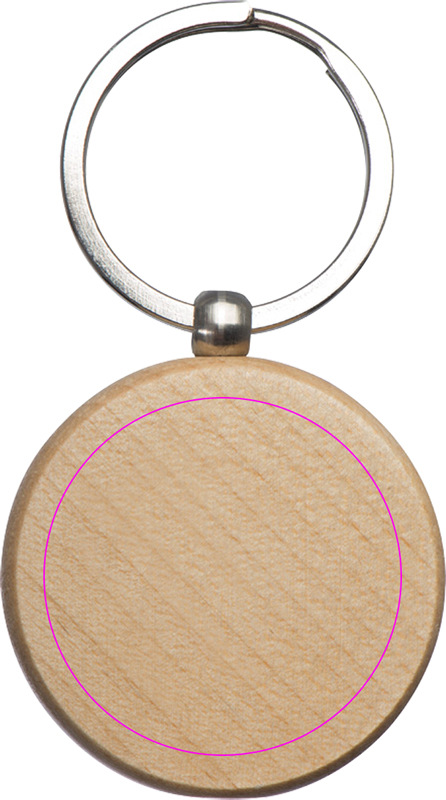 Pyöreä pyökkipuinen avaimenperä avainrenkaalla. Laserkaiverruksen avulla logosi tulee ihanteellisesti esiin.