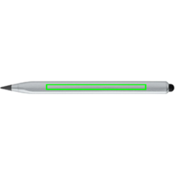 Moderni infinitykynä, joka on valmistettu RCS-sertifioidusta kierrätetystä alumiinista. Kierrätetyn materiaalin kokonaismäärä: 40% koko tuotteen painosta. RCS-sertifiointi varmistaa kierrätysmateriaalien täysin sertifioidun toimitusketjun. Kolmionmuotoisessa rungossa on yksi sivu, jossa on CM-merkinnät ja toinen sivu, jossa on tuuman merkinnät. Perinteiset puukynät kirjoittavat vain noin 200 metriä, mutta tämä puusta vapaa rajaton kynä kirjoittaa jopa noin 20000 metriä grafiittikärjen avulla. Se ei ainoastaan kirjoita kuin tavallinen kynä, vaan merkinnät voi myös pyyhkiä pois. Se toimii jättämällä grafiittilinjan paperille ihan kuten tavallinen puukynä, mutta kulutus on niin hidasta, että sen pitäisi kestää jopa 100 tavallista puukynää! Mukana kosketuspää mobiililaitteen käyttöä varten. Pakattu FSC®-mix pakkaukseen.