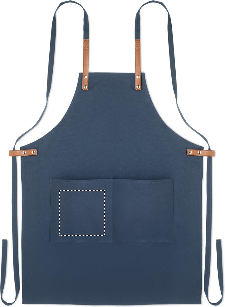 Säädettävä ja 2 etutaskulla varustettu 340 gr/m² orgaanisesta puuvillasta valmistettu esiliina.