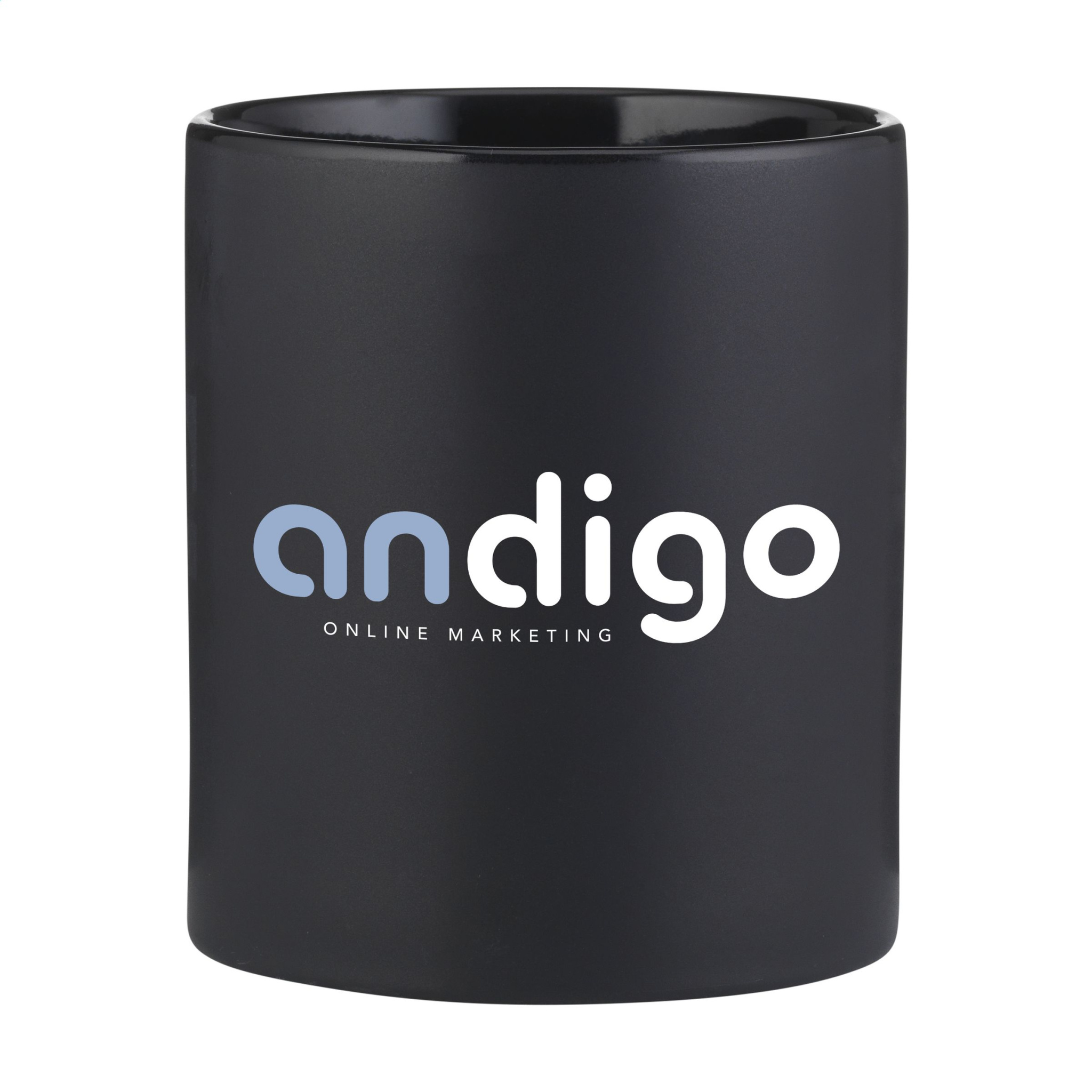 Laadukas keraaminen muki, jossa on mattamusta ulkopinta ja kiiltävä musta sisäpuoli. Astianpesukoneen kestävä. Jälki on astianpesukoneessa testattu ja sertifioitu: EN 12875-2. Tilavuus 350 ml.
