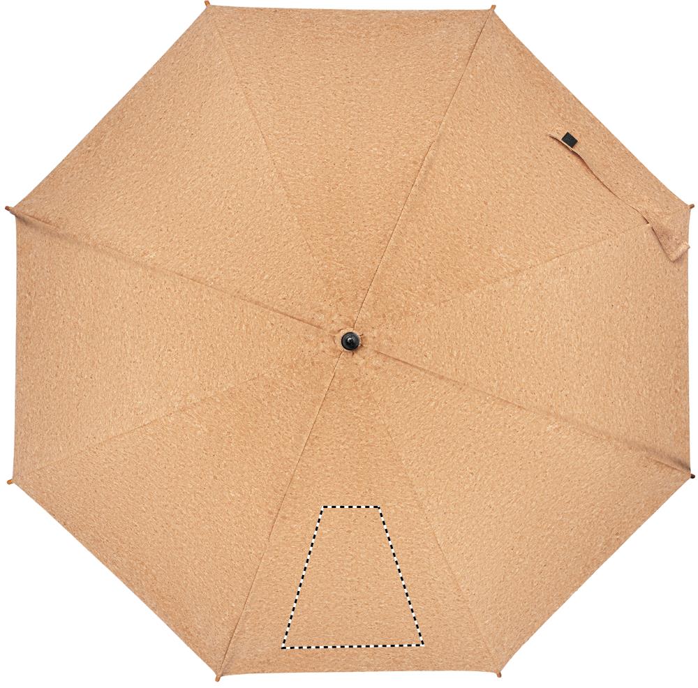 25 tuuman automaattinen korkista valmistettu sateenvarjo bambu varrella ja vaneri kahvalla. Lasikuitu ruoteet ja musta pääty, manuaalinen suljin. Korkki on luonnonmateriaali, strukturaalinen laatu ja pinnan huokoisuus voi aiheuttaa eroavaisuuksia tuotteissa painatuksen jälkeen.