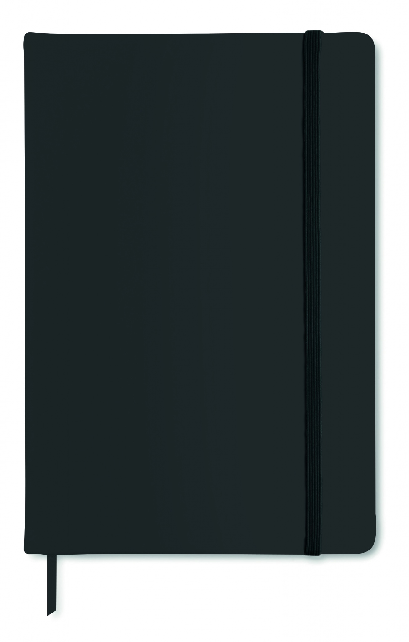 A6 muistikirja kovalla PU kannella, 192 viivattua sivua (96 arkkia) väriltään yhteensopiva kumilenkki ja kirjanmerkki.