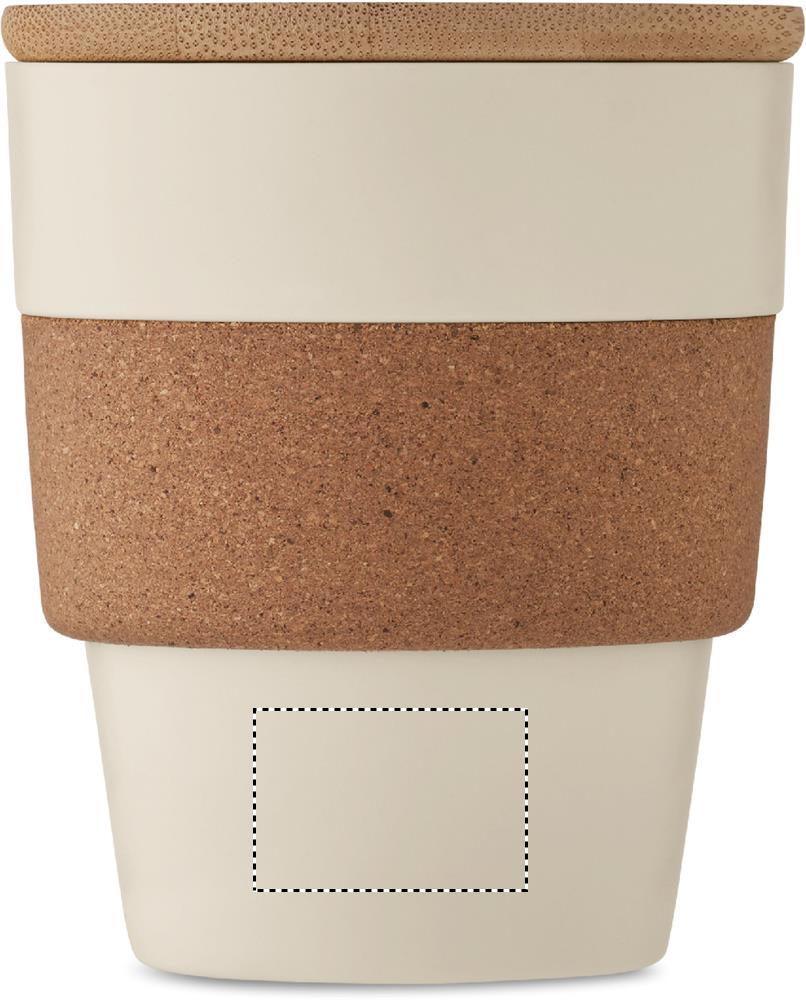 Yksiseinäinen muki kierrätetystä PP:stä, jossa korkkisuojus ja bambukansi. Tilavuus: 300 ml. Koska kyseessä on yksiseinäinen muki, lämmönsiirtymistä voi silti tapahtua.