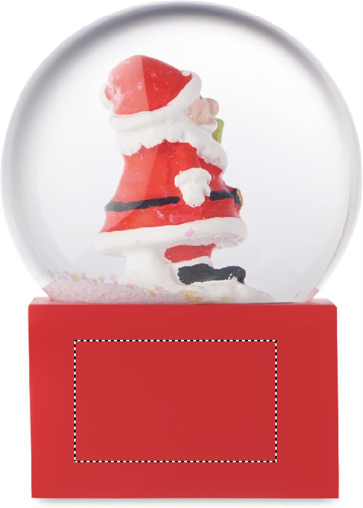 Pieni jouluinen lasinen lumipallokoriste, jossa on polyresiinipohja.