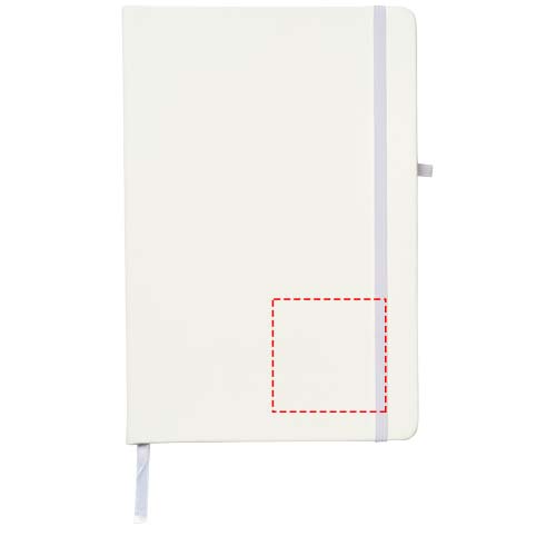 A5 muistikirja, kuminauhasuljenta, kynälenkki ja sivumerkki. Sisältää 96 sivua 70g/m2 viivallista paperia. Pehmeän tuntuinen PU-kansi.