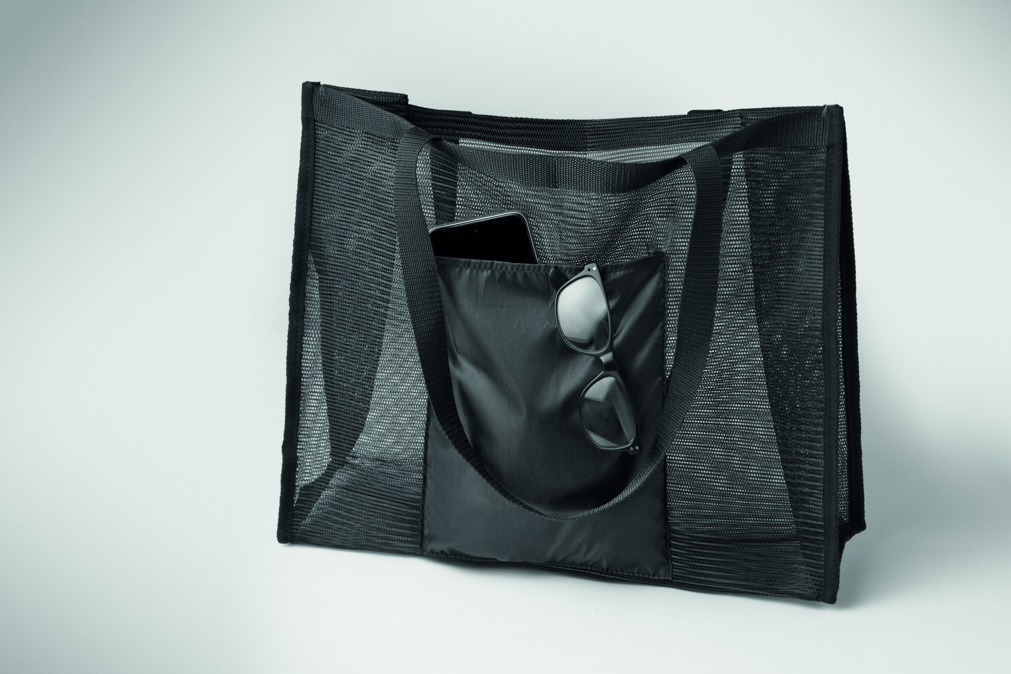 RPET-verkosta ja 210D RPET:stä valmistettu ostoskassi, jossa on lyhyet kahvat. Mukana suuri avoin etutasku. Tilavuus 20 litraa, kantavuus jopa 10 kg.