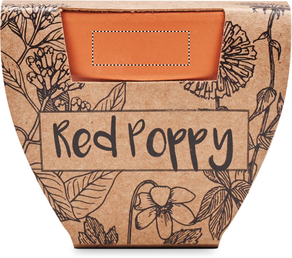 Pieni saviterrakotta ruukku, sisältää unikon siemeniä.
