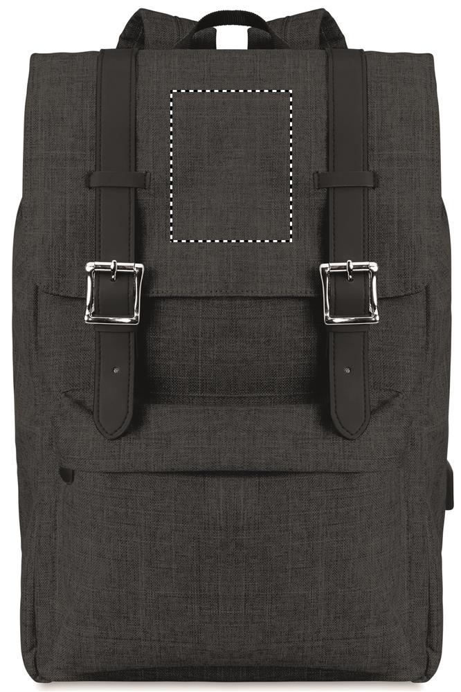 600D 2 sävyinen polyesteri reppu, 15 tuuman kannettavalle tietokoneelle ja USB latauskaapeli. Magneettinen suljin ja vetoketjullinen etutasku, pehmustetut olkaimet.