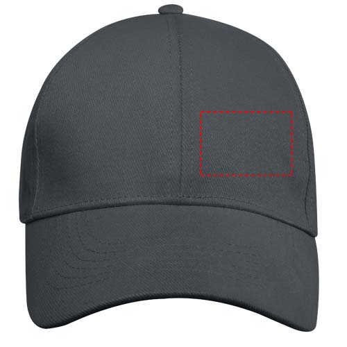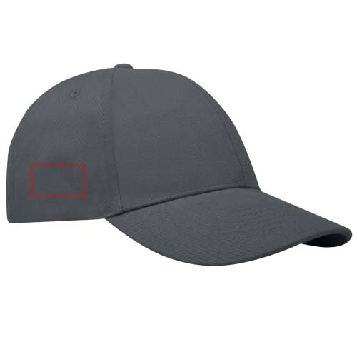 Ympäristöystävällisesti valmistettu lippalakki. Valmiiksi kaareva lippa. Brodeeratut tuuletusreiät. Metallinen kiristyssolki. Pään ympärys: 58 cm.