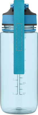 Motivoiva vesipullo RPET-muovista, jossa on integroitu pilli, pehmeä silikoninen suukappale, yhdellä kädellä avattava fliptop-kansi, turvalukko. Hihna RPET-satiinista. Tilavuus 700 ml. Vuotamaton.