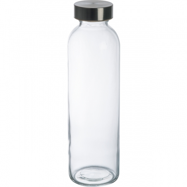 Lasinen juomapullo, jonka tilavuus on 600 ml ja jossa on ruostumattomasta teräksestä valmistettu kansi. Pullo sopii hiilihapollisille juomille. Painatamme logosi pulloon. Kaiverrus korkkiin saatavilla pyynnöstä.