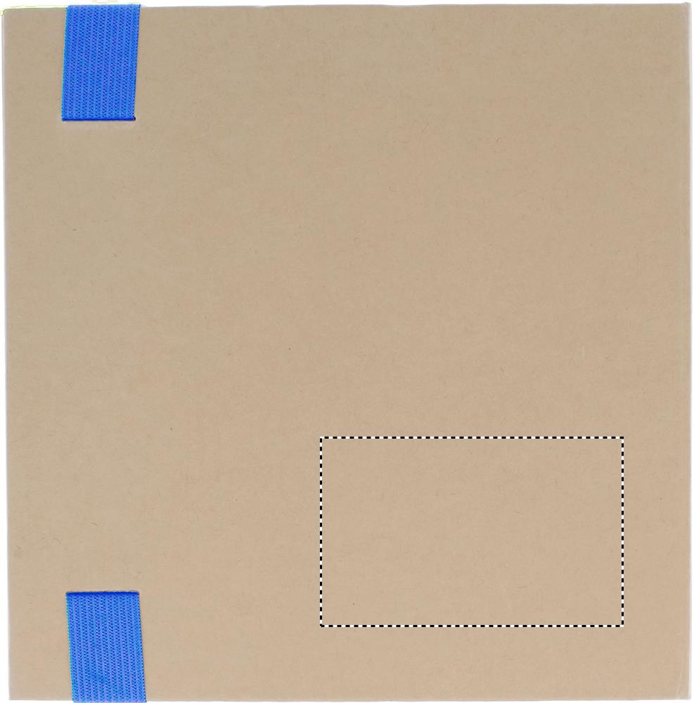 Užrašų knygelė su perdirbto kartono dangteliu. 100 paprastų lapų bloknotas. 3 dalių lipdukų bloknotas. Dideli ir vidutiniai geltoni lipni lapeliai ir 5 įvairių spalvų puslapių žymekliai. Derantis mygtukų tušinukas su popieriniu vamzdeliu. Rašiklio laikiklis. Elastinės juostos uždarymas.